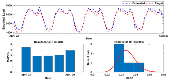 In this section, some comparisons are given to better show the suggested approach’s superiority. In [13,16], the ANNs are applied to MTLF. The load peak forecast accuracy is examined for normal days during a year from March 2019 to March 2020. The values of MAPE are given in Table 3. The value of MAPE for the suggested method is remarkably better than conventional ANN-based approaches. In the proposed approach, the set of input variables, the number of layers in RBMs and the number of neurons are optimized to achieve the best accuracy. In addition, the parameters of hidden layers are well tuned by the suggested deep learning approach.