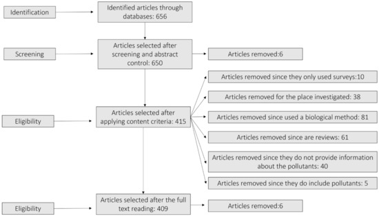 - Review articles containing no information on pollutants or relevant results.