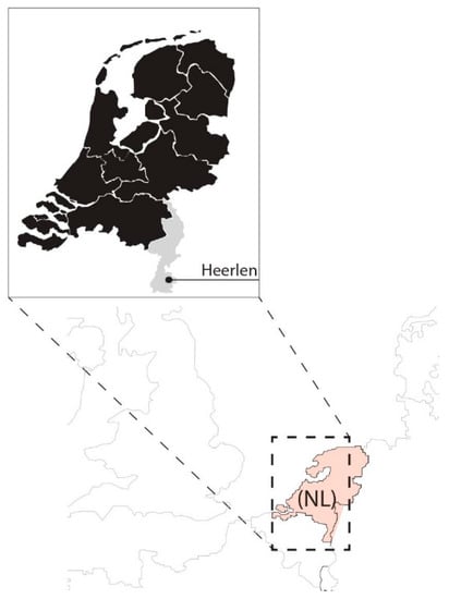 Heerlen, a city of almost 87,000 inhabitants (2020) [33], is known as the shrinking city in the Netherlands. Both the city and the Parkstad Limburg region have been subject to academic interest [14,28,34,35,36,37] as population loss and associated challenges keep persisting. The city is located in the very south of the Netherlands, close to the borders with Germany and Belgium (see Figure 1). However, strategies against this development, such as rebranding the deindustrialized area have also been implemented. Although the forecast for population development in the Netherlands points to growth, there are shrinking regions in the periphery of the country [34]. Parkstad Limburg, however, is the only urbanized shrinking area in the country as the phenomenon appears to be more present in rural areas. Once the richest city in the Netherlands, Heerlen began to lose population in the 1970s after the mining industry was closed [14,34]. In the period of 1900–1965 the close connection to mining shaped not only the area in a physical manner, as mining companies constructed and provided housing, but also had effects on the day to day life of residents and miners. Together with the Catholic Church, the mining industry had a big influence on how residents laid out their day to day lives in terms of work and leisure. The growth and prosperity began to decline after the coal mines were closed rapidly by the Dutch government in the period of 1965–1973. This closure was followed by many job losses, which impacted generations ahead, as well as population loss, which has manifested itself as selective outmigration of the young and qualified population through the years [38]. However, as Elzerman and Bontje [22] underline, the omission of the mining industry and the Church as institutions who influenced heavily how residents lived, was followed by socioeconomic consequences [14,28,34]. Not only did the unemployment rate skyrocket above national average [28], but residents were also left hanging, without major institutions telling them how to live and structure life. The governmental action against this trend was to transfer some national institutions, such as the national statistics office, a pension fund and the Open University to Heerlen. However, as Rocak [14] notes, this was a “clear mismatch between white and blue-collar employment”. Although the population has stabilized in recent years [33], Heerlen is still not considered a highly attractive city. Where mines and other built infrastructure were demolished, vacant green spaces were left and shape the cityscape together with vacant retail spaces in the inner city.
