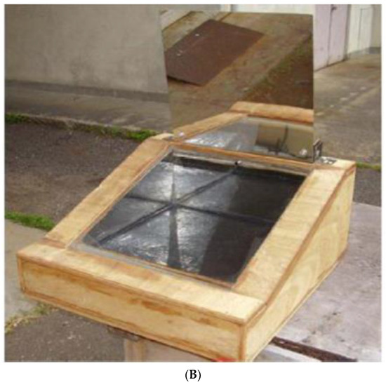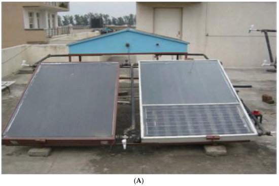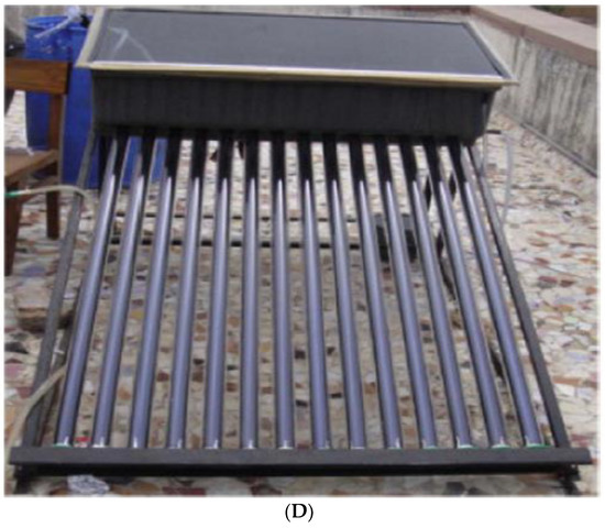 Photos related to various types of hybrid solar still. (A). Solar still with Photovoltaic-Thermal (PV/T) modules (Gajendra et al. [80], “Reprinted/adapted with permission from Ref. [80]. 2011, Elsevier”). (B). Solar still with evacuated solar water heater (Omara et al. [81] “Reprinted/adapted with permission from Ref. [81]. 2013, Elsevier”). (C). Solar still with solar air heater (Siddiqui et al. [82], “Reprinted/adapted with permission from Ref. [82]. 2016, Elsevier”). (D). Solar still with evacuated tube collector (Panchal and Pravin [83], “Reprinted/adapted with permission from Ref. [83]. 2016, Elsevier”).