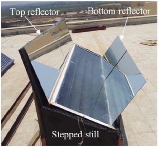 Stepped solar still with internal and external reflectors (Omara et al. [92], “Reprinted/adapted with permission from Ref. [92]. 2014, Elsevier”).