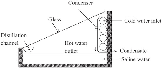 - Murugavel, K.; Anburaj, P.; Hansen, R.; Elango, T. Progresses in inclined type solar stills. Renew. Sustain. Energy Rev. 2013, 20, 364–377. [Google Scholar] [CrossRef]