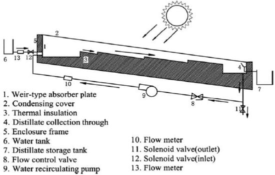 Schematic of water film solar still (Mousa and Bassam [36], “Reprinted/adapted with permission from Ref. [36]. 1997, Elsevier”).