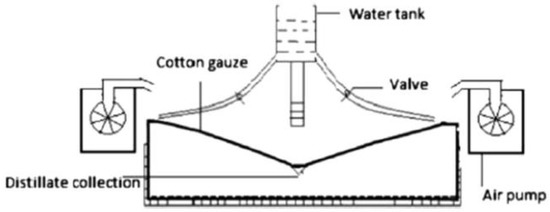 - Suresh, P.; Jayaprakash, R.; Arunkumar, T.; Denkenberger, D. Effect of airflow on V- type solar still with cotton gauze cooling. Desalination 2014, 337, 1–5. [Google Scholar]