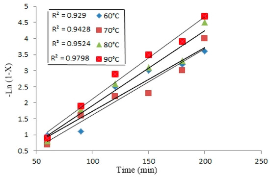 Whereas, k represents the rate constant of reaction, Ea is activation energy (kJ), t is for absolute temperature, and R is for gas constant [45].