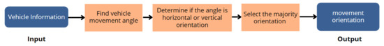 After we obtain the angle for each vehicle movement in the vehicle information, we have to set the range of the angle where we will consider it as a horizontal or vertical orientation. We set the condition as shown in Algorithm 1 on lines 11 and 13.