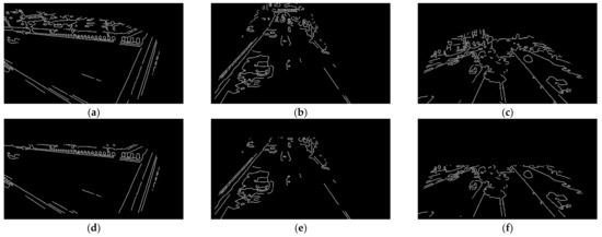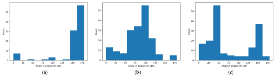 As we can see in Figure 8, (a) contains a road lane with a horizontal angle, (b) contains a vertical angle, and (c) contains the vertical angle with two road lanes. We developed a method to let the system identify the orientation automatically, and the flow of this method is shown in Figure 9.