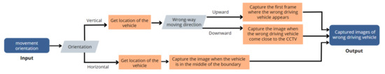 Monteiro et al. [8] proposed the wrong way driving vehicle algorithm on the highway road based on the object movement inside the video frame, grouped the movement into directions, and identified if the moving object is vehicle-based on appearance. As a result, they showed that the system is robust in various conditions. However, they did not consider the case where the side road noise may disturb the whole system’s movement.