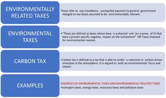 - African Tax Administration Forum. Environmental Taxes Defined. 2021. Available online: https://events.ataftax.org/includes/preview.php?file_id=143&language=en_US (accessed on 20 June 2022).
