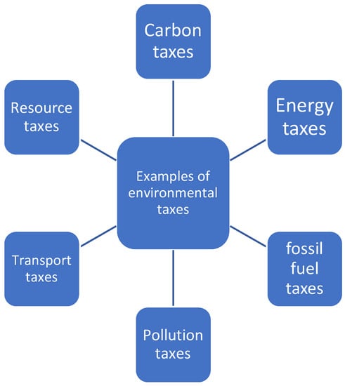 In the past few years, due to increasing pollution, matters of environmental protection and sustainable development have become topical issues. Governments are under pressure to come up with ways to minimize the environmental damage while reducing the negative impact of the exploitation of natural resources and energy usage []. In response to this immense pressure, countries have applied a variety of tools to attain the sustainable development and environmental preservation goals. Governments have an array of economic tools to employ, and these include innovation policies, regulations, environmental subsidies, information sharing and awareness programs and environmental taxes. As posited by Braathren and Greene [], “Taxes are in particular a key part of this tool kit”. Even though various economic instruments are at governments’ disposal, environmental taxes have become the most significant and fruitful economic instrument in the climate change and environment preservation fight. The terms green taxes and environmental taxes are often used interchangeably in the literature, and likewise, they will be applied interchangeably throughout this article. Others refer to the green taxes as climate taxes, ecological taxes or eco taxes [,]. These terms reflect the need to protect the environment, climate and biodiversity.