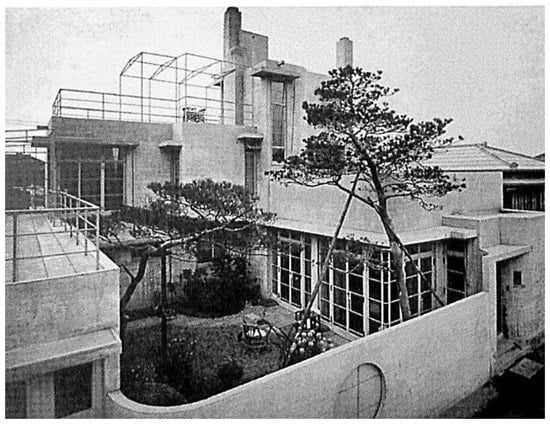 - Cabeza-Lainez, J.; Verdejo-Jimenez, J.R. The Japanese experience of environmental architecture through the works of Bruno Taut and Antonin Raymond. J. Asian Archit. Build. Eng. 2007, 6, 33–40. [Google Scholar] [CrossRef]