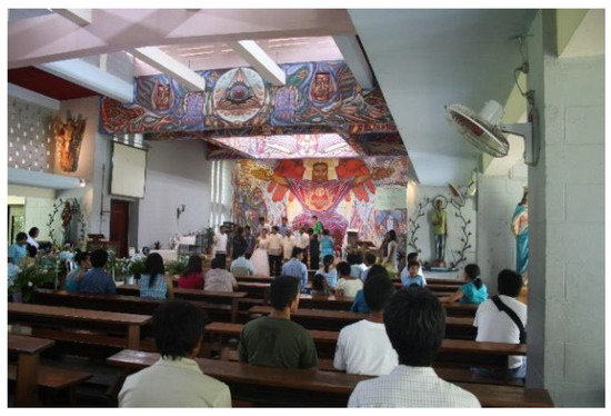 4.2. Example of a Church Adapted to the Warm-Humid Climate