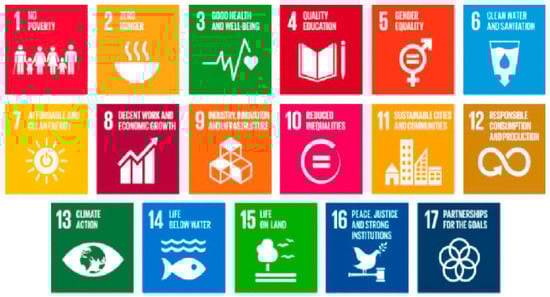 Sustainability has become a strategic imperative for almost all industries and businesses [22]. It is seen as a multidimensional concept that encompasses environmental, economic and social aspects. The concept has its origins in the Brundtland Report of 1987 [23]; however, the concept has been interpreted by the UN definition of sustainability as meeting the needs of the present without compromising the ability of future generations to meet their own needs [23]. Worldwide, organisations have put forth efforts to include sustainability in their management practices [4]. In 2015, the UN officially adopted the 2030 agenda for sustainable development that guides global action, consisting of 17 SDGs, see Figure 1 [24].