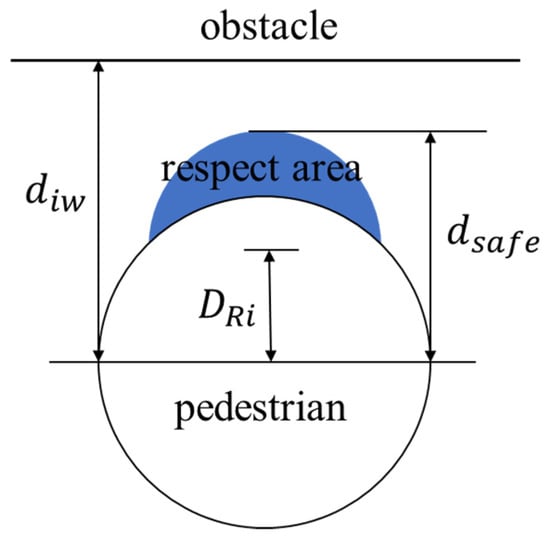 Here, is the respect spacing; is the respect factor and set as 0.7 [39]; and is the safe distance between pedestrians and obstacles.