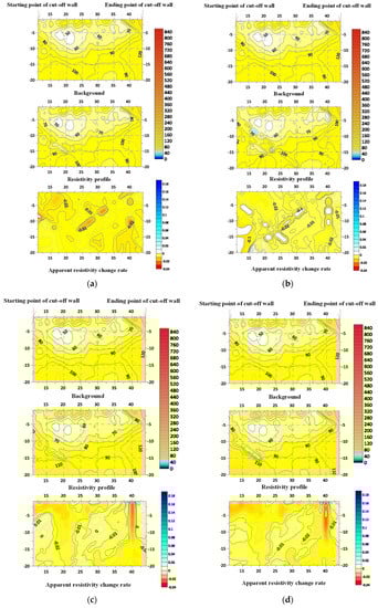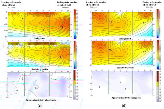Based on the conductivity difference of geotechnical media, the high-density electrical method observes and studies the distribution law of the current field to detect underground geological problems. In order to further verify the wall-forming quality of the large-diameter, ipsilateral, multi-nozzle, high-pressure jet cut-off wall, relying on the flood control project of Jinggangshan navigation hydropower, the parallel high-density electrical method detection technology is used to detect the permeability of the cut-off wall. The data acquisition method of the parallel electrical method adopts a pseudo-seismic acquisition method, which adopts two methods of monopole power supply (AM method) and dipole power supply (ABM method) for data acquisition and processing. In order to measure the resistivity of uniform earth, symmetrical quadrupole devices are usually arranged on the earth surface, that is, two power supply electrodes A and B, and two measuring electrodes M and N. When the current I is sent underground through the power supply electrodes A and B stable electric field is established in the uniform half space with underground resistivity, and the potential difference is observed at M and N. The calculation expression of the uniform earth resistivity is: