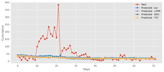 - Chimmula, V.K.R.; Zhang, L. Time series forecasting of COVID-19 transmission in Canada using LSTM networks. Chaos Solitons Fractals 2020, 135, 109864. [Google Scholar] [CrossRef]