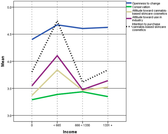 Income level favors the intention to purchase cannabis-based skincare cosmetics.