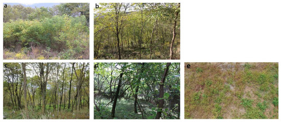 - Xu, M.; Zhang, J.; Liu, G.; Yamanaka, N. Soil properties in natural grassland, Caragana korshinskii planted shrubland, and Robinia pseudoacacia planted forest in gullies on the hilly Loess Plateau, China. Catena 2014, 119, 116–124. [Google Scholar] [CrossRef]