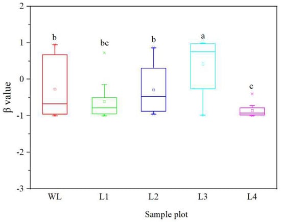 | L4 | 56 | N: 34°32′11.63″–E: 105°44′02.66″ | 1494 | 15 | 17.20 ± 1.69 | 14 Robinia pseudoacacia; 3 species of herbaceous plants |