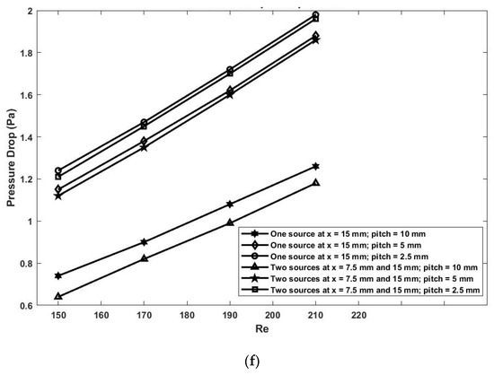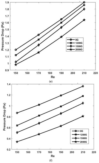 4.3. Variation of the Pressure Drop across the Channel with Re