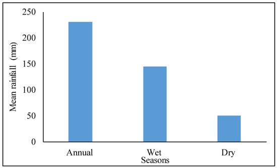 Precipitation was distributed locally rather than regionally. It is distinguished by high rainfall intensity in some areas (Figure S1). The average annual rainfall in the Abha area was 172.4 mm. In SA, Aseer has the highest mean precipitation (March–June), while rainfall is negligible in other months [89]. Rainfall is higher in the central-northwestern mountainous areas than in the rest zones (Figure 2a).