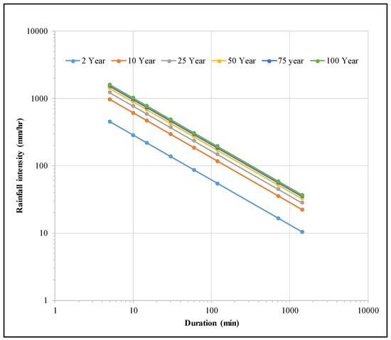 Intensity–duration–frequency (IDF) curves of Abha City (intensity data within 1978–2020 periods).