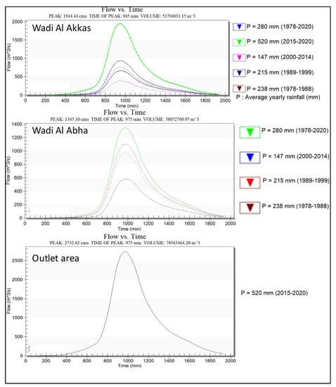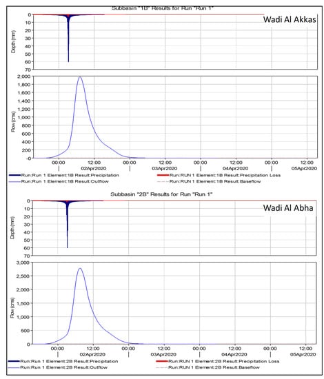 HEC-HMS simulated hydrograph of Wadi Al Akkas and Wadi Abha.