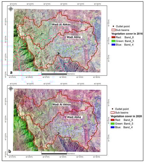 Vegetation covers in (a) 2016 and (b) 2020 periods.