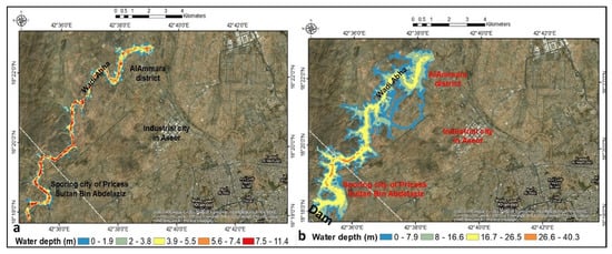 Flood risk in El Arine (a) and El Mensek (b) during 2017 period, Abha city (after [75]).