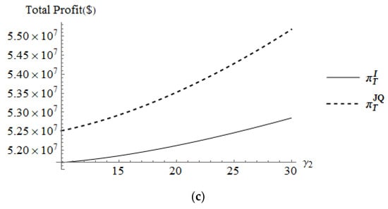 According to Figure 9c, the total demand under the Initial Theoretical Equilibrium state () is positively affected by , but the total demand under the joint quotation strategy () is negatively affected by . However, the total demand level under the Initial Theoretical Equilibrium state is always much higher than that under the joint quotation strategy.