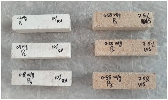 Hardened gypsum prisms with 10% rice husk and 7.5% wheat straw.