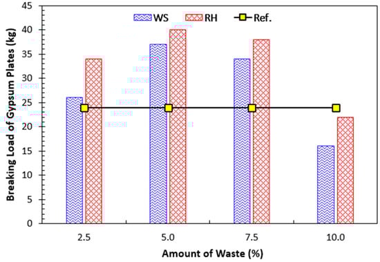Gypsum false ceiling plates breaking load variation with the amount of waste.
