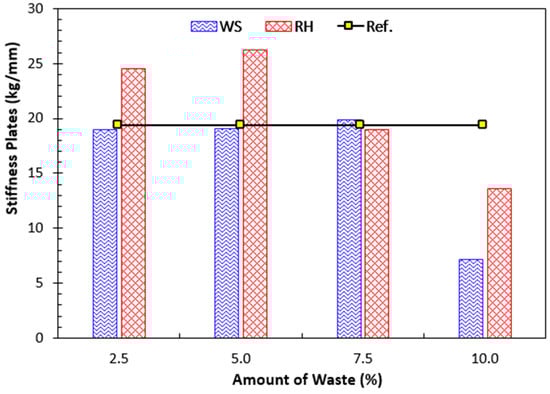 Effect of amount of waste on the stiffness of false ceiling plates.