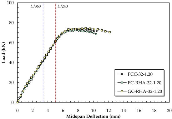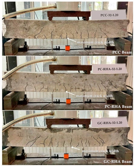 - Lastly, because the overall flexural behaviors of PC-RHA and GC-RHA beams are similar to those of conventional PCC beams in terms of load–deflection, cracking propagation, and failure mechanism, designers generally accepted that PC-RHA and GC-RHA beams could be designed in the same way.