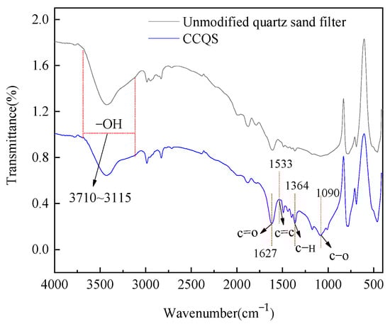 FTIR spectra of CCQS and unmodified quartz sand filter.