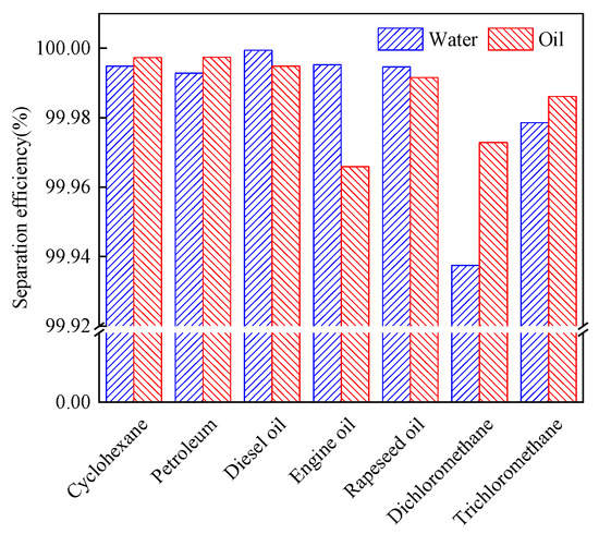 Separation efficiency of different kinds of oil/water mixture.