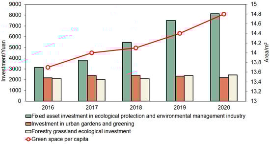 Investment in ecology-related industries in China from 2016 to 2020. Data source: 2017–2021 China Environmental Statistical Yearbooks and 2017–2021 China Statistical Yearbooks.