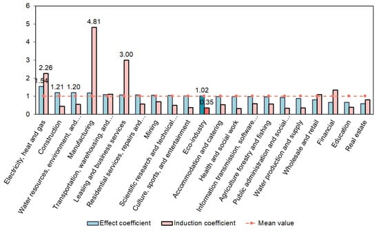 Effect coefficient and induction coefficient of industrial sectors (for industry name see Table 3).