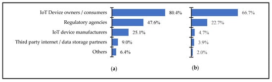 Stakeholders with the most authority in dealing with IoT data. (a) Collect, Share and Use Data. (b) Own Collected Data. Source: Authors’ survey (sample size = 255).