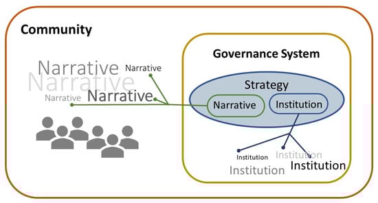 Strategy is both an institution and a narrative. As an institution, it coordinates other institutions within the governance system or governance arrangement in the community. As a narrative, it brings together, synthesizes, and/or coordinates different narratives within the community.