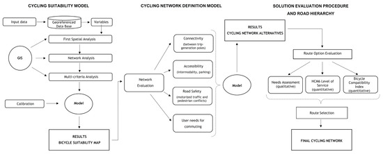- A cycling network definition model based on connectivity, network intersections, integration with other transport modes, parking, and safety.