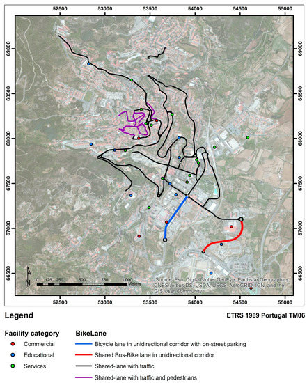 For the set of CIM-BSE municipalities, the 2001–2011 diagnosis within the scope of PAMUS-BSE revealed a decrease in the soft modes’ share for commuting trips. It also showed a loss of 47% in pedestrian commuters and a bicycle share of only 0.6% [99]. The PAMUS-BSE considered that reversing this trend would primarily involve the improvement and expansion of the main pedestrian and cycling network in urban areas, not only to improve safety and comfort conditions, but also the attractiveness of the main connections between the trip generation points.