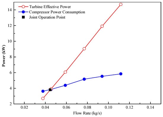 - Flow rate balance: the compressor working mass flow rate plus the engine fuel mass flow rate is equal to the turbine working mass flow rate, and this flow rate balance condition is also followed when the turbine bypass valve is opened.where is the turbine operating flow rate (kg/s), is the compressor operating flow rate (kg/s), and is the fuel flow rate (kg/s);