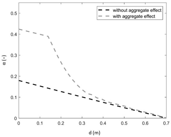 In particular, the contribution of the aggregate effect has been evaluated with the actions acting on the wall as shown in Figure 6. The capacity curves obtained by the analysis are reported in Figure 7 where the black curve refers to the case neglecting the aggregate effect and the grey curve to the case of including the aggregate effect. From the figure, the increase of capacity of the façade considering the aggregate effect and, at the same time, the progressive reduction of the contribution due to this effect is evident.