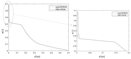 Horizontal loads multiplier α vs. displacement d of the overturning wall strengthened by PBO-FRCM.