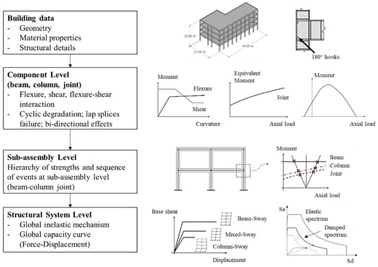 The SLaMA assessment procedure develops from the identifications of the critical structural weaknesses (CSW) through: (1) the evaluation of the flexural and shear capacity of the structural members (i.e., beams, columns, and beam–column joints); (2) the hierarchy of strength and sequence of events of the connections and beam–column subassemblies (according to Pampanin et al. [27]); and (3) the local and global collapse mechanisms and the building capacity curve.