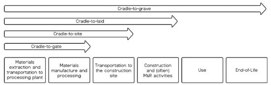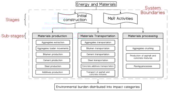 Main system boundaries employed to develop the LCA on road infrastructure. Adapted from [51,52].