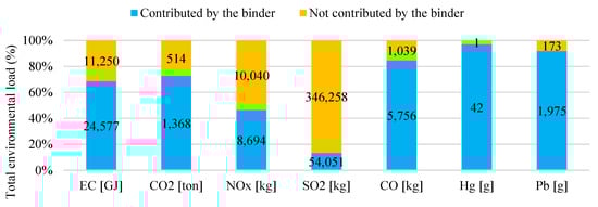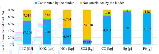 - Most of the environmental burden occurred in the materials production sub-stage for the other impact categories. Meanwhile, marginal impacts were generated in the materials transportation sub-stage. On the other hand, materials processing caused negligible environmental impacts. Hence, to reduce the environmental impact of road infrastructure, it is necessary to diminish the depletion of non-renewable resources. In this way, materials reuse techniques and recycling technologies can be implemented, which for instance, include partial replacement of the raw materials using construction and demolition waste materials, recovery of asphalt binders, and utilization of industrial waste as supplementary cementitious material (SCM), among others [88,89,90,91].
