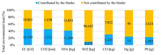 At each stage, the contributions made by the sub-stages of materials production, materials transportation, and materials processing were evaluated. Each sub-stage involved the contributions made during the initial construction processes and M&R activities. Figure 8 shows this analysis. From this graph, the following findings can be drawn: