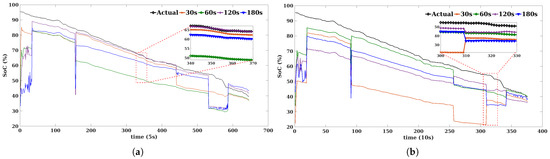 - Zheng, Y.; Ouyang, M.; Han, X.; Lu, L.; Li, J. Investigating the error sources of the online state of charge estimation methods for lithium-ion batteries in electric vehicles. J. Power Sources 2018, 377, 161–188. [Google Scholar] [CrossRef]